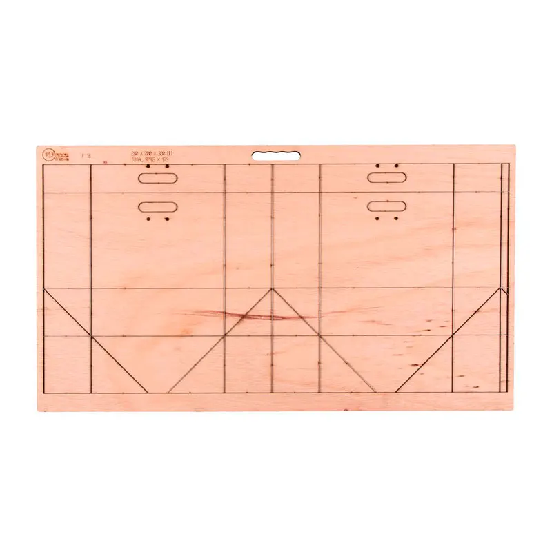 A faca de corte e vinco para sacolas é, de maneira geral, fabricada em madeira de compensado de 18 mm e aço 2 pontos, que asseguram a durabilidade do instrumento. Além disso, o produto é dimensionado para a instalação em máquinas de corte e vinco manuais, automáticas ou planas, com possibilidade de adequação da faca de corte e vinco para sacolas, em casos de necessidade.
