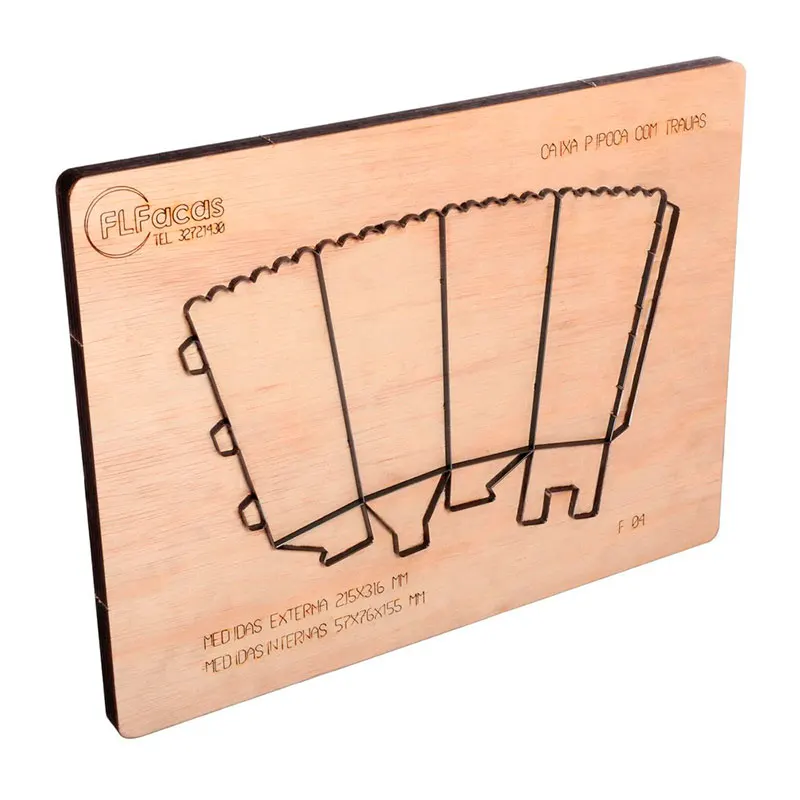 As facas para máquina de corte e vinco consistem de um suporte, geralmente de madeira ou acrílico, onde são dispostas diversas lâminas. Estas lâminas são feitas sob medida para cada formato de corte.